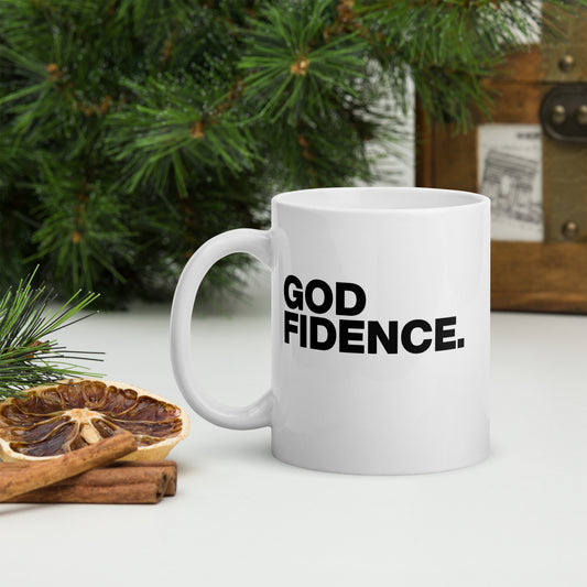 GODfidence White glossy mug